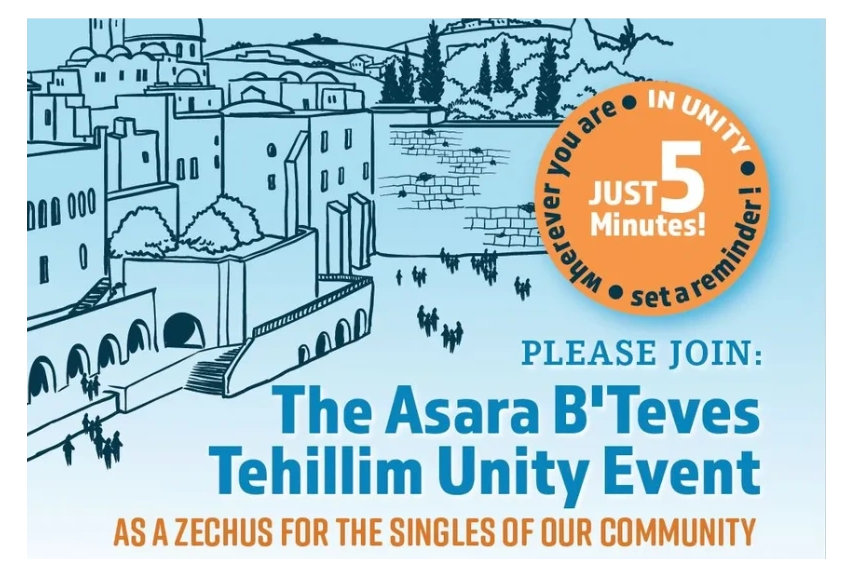 Please join the Asara B'Teves Tehillim Unity event as a Zechus for the singles of our community.